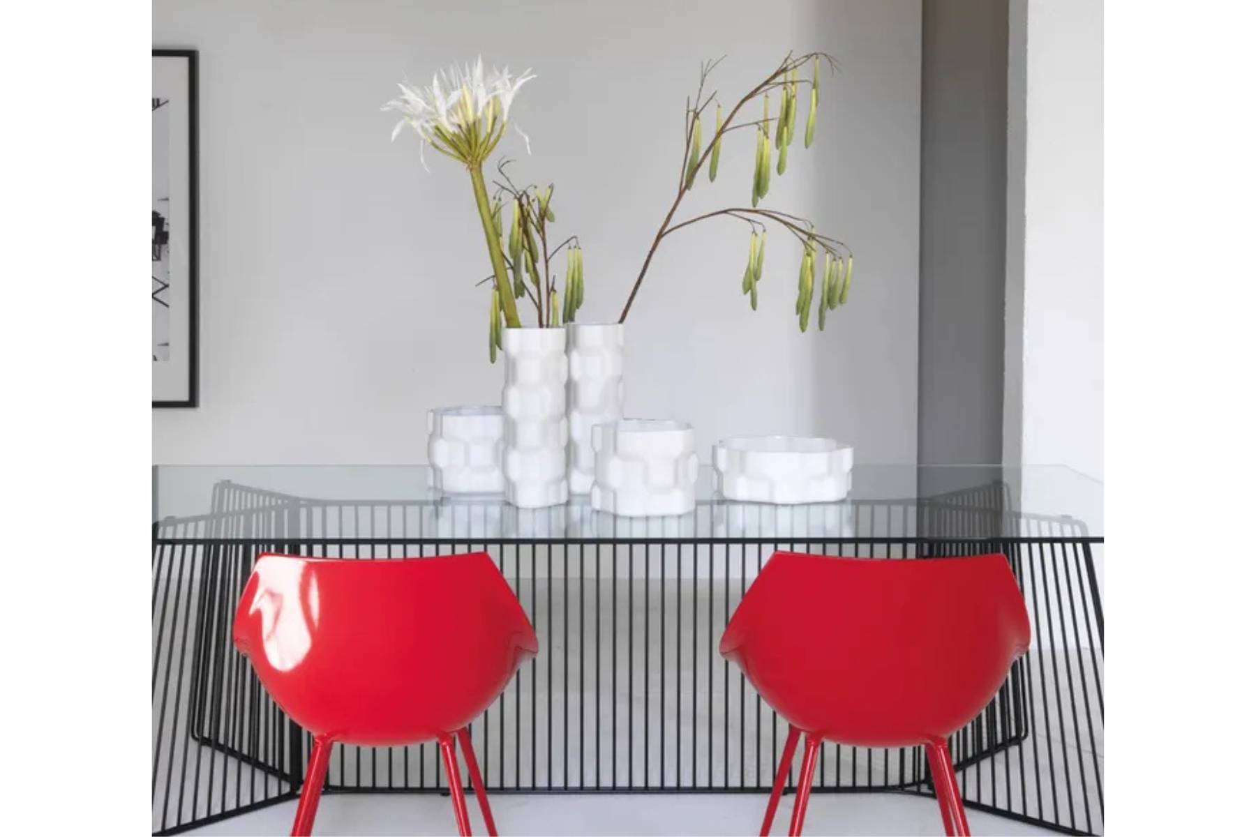 Gear di Driade Γ¨ una collezione di vasi che si ispira agli ingranaggi: gli elementi geometrici si incrociano in verticale e orizzontale, creando una superficie tridimensionale. Sono disponibili 3 misure differenti e, disposti vicini, i vasi si combinano perfettamente, richiamando lβidea di un meccanismo sincronizzato.