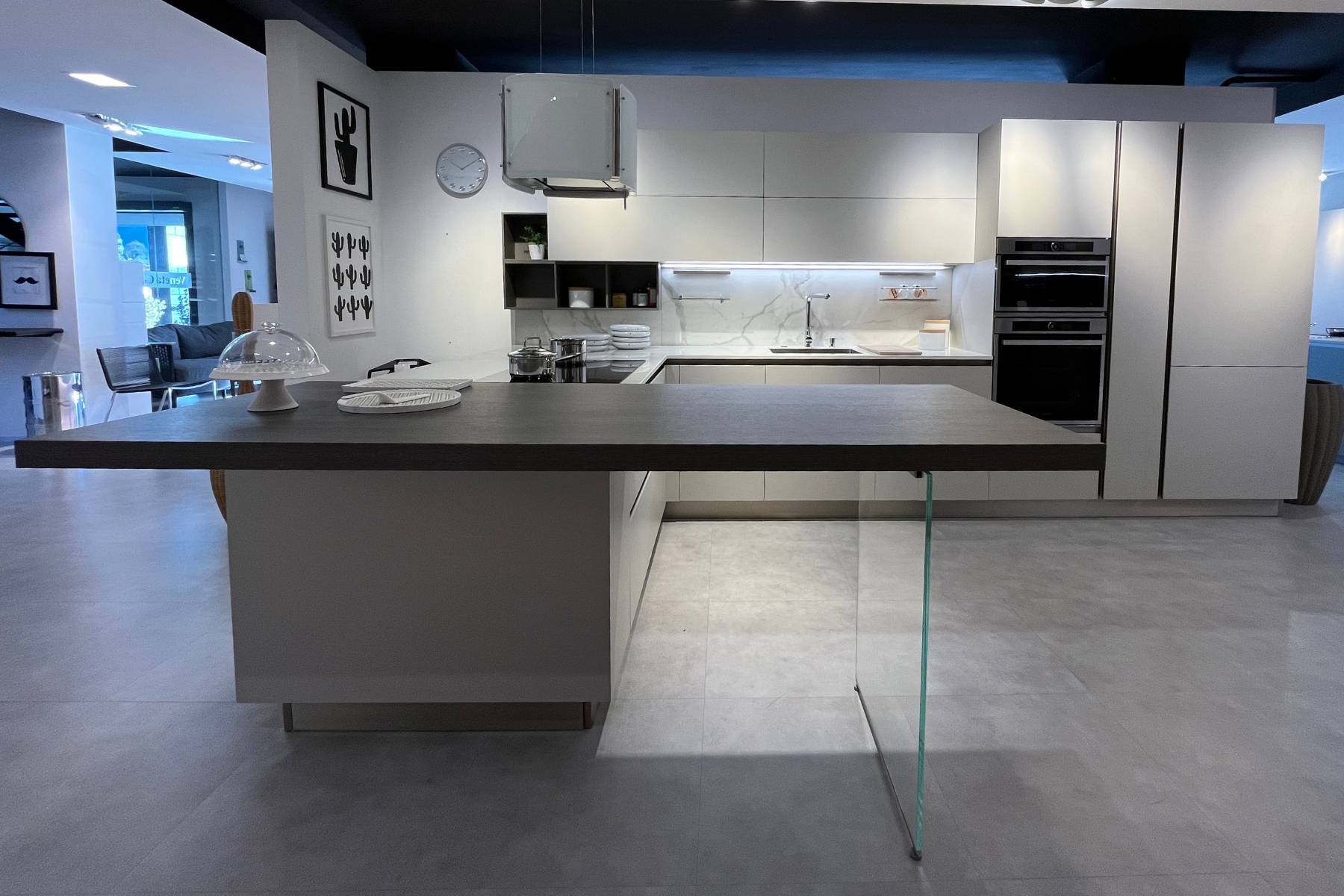 La penisola è in laminato finitura Quercia Grigio Del 866.