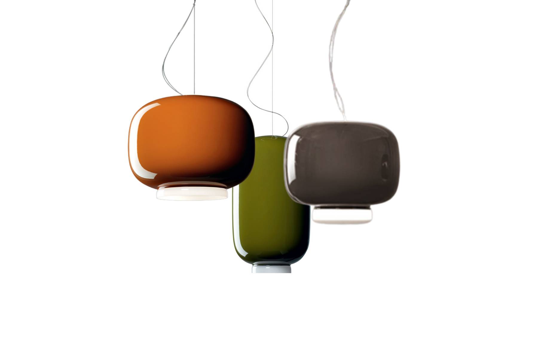 Composizione Chouchin di Foscarini è una famiglia di lampade che giocano sul contrasto visivo tra il vetro soffiato verniciato e il bianco, disponibili in varie forme e colori, perfette anche per essere combinate in più composizioni.
