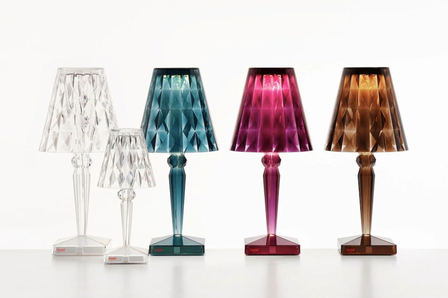Big Batteryย (battery version) di Kartell รจ una lampada da tavolo completamente dimmerabile e ricaricabile tramite una comune presa elettrica, garantendo unโautonomia di 8 ore. ร perfetta per lโuso in caffรจ e ristoranti allโaperto, ma anche per la casa. ร disponibile anche una variante con alimentazione tramite cavo elettrico.