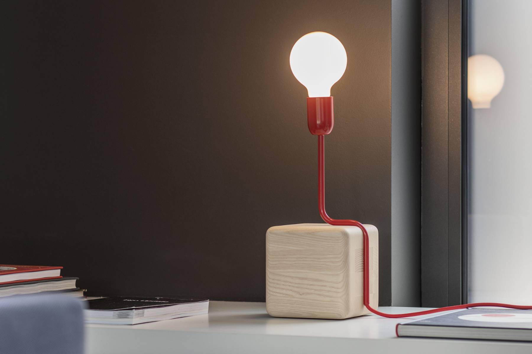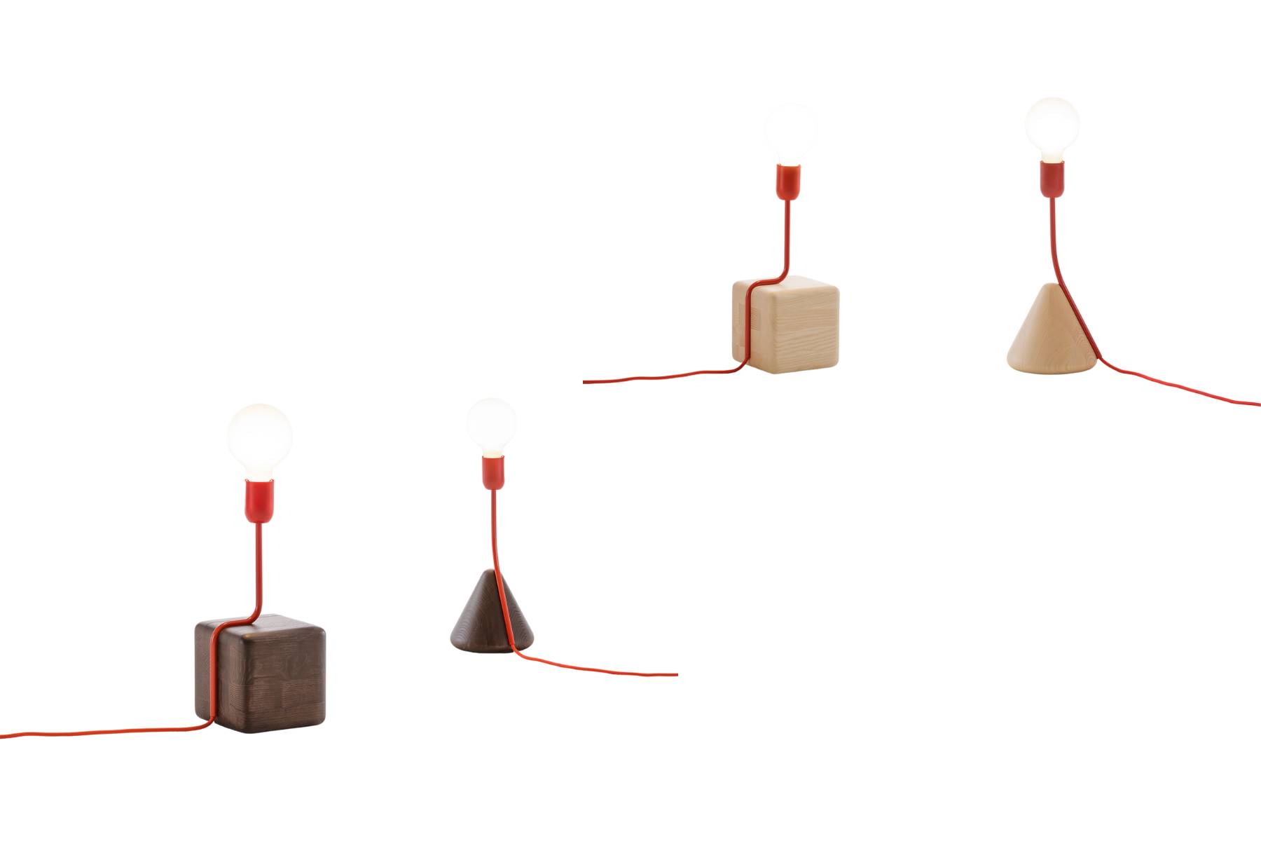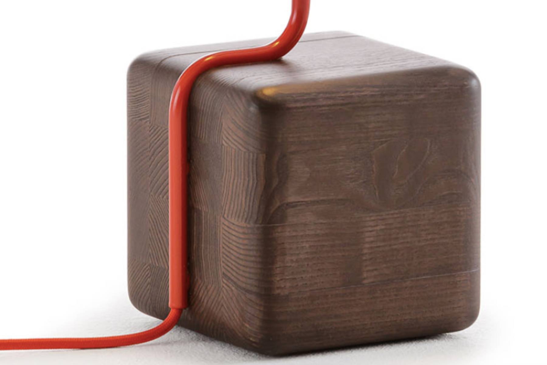 Filo Rosso di Flou Natevo Γ¨ una lampada da tavolo che unisce una classica lampadina a una base in legno di frassino, con un “filo rosso” che da elemento funzionale diventa decorativo, aggiungendo un tocco di originalitΓ  e ironia al design.