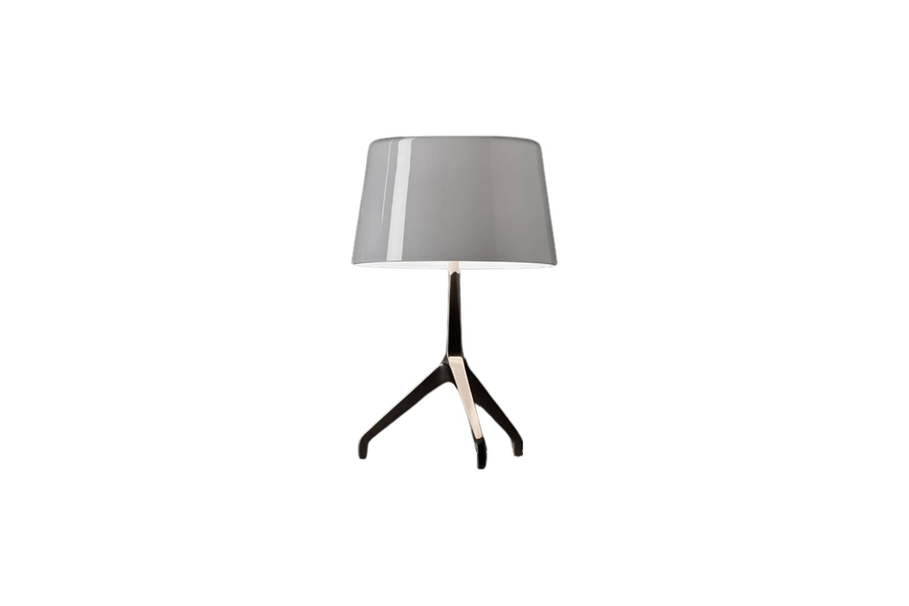 Lumiere XXS di Foscarini Γ¨ una lampada da tavolo armoniosa e sofisticata, basata sull’interplay tra l’accogliente vetro soffiato a mano del diffusore e la moderna tecnologia del treppiede in metallo.