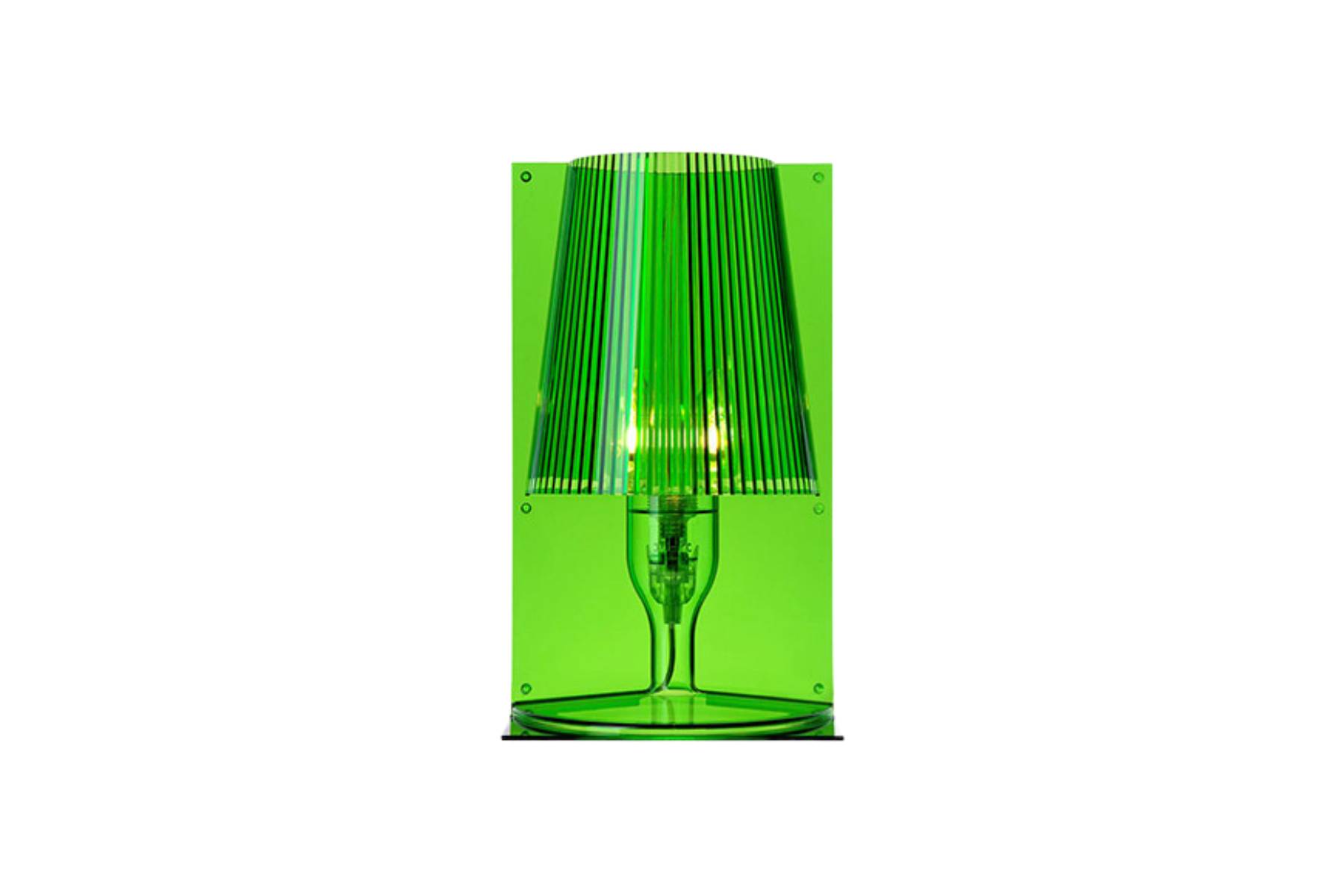 Take di Kartell Γ¨ una lampada da tavolo o da comodino.Β Essa prende forma dall’unione di due parti specchiate: due lastre rettangolari piatte che si trasformano nella forma e nel volume della “semi-lampada”. Il plissΓ© all’interno del diffusore aggiunge un tocco di eleganza creando, quando accesa, uno splendido gioco di riflessi.