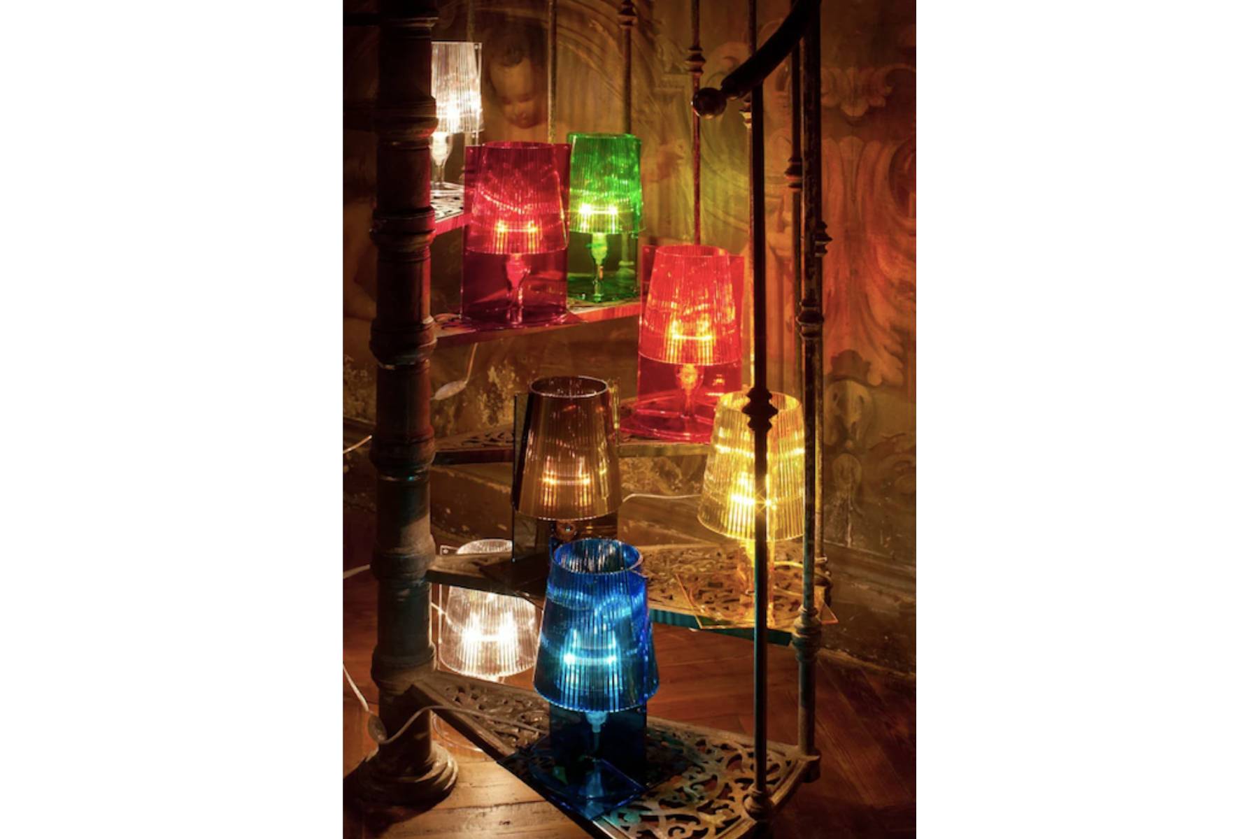 Qui l’icona classica dell’abat-jour viene reinventata da Kartell, trasformandosi in un prodotto industriale disponibile in molteplici colori.