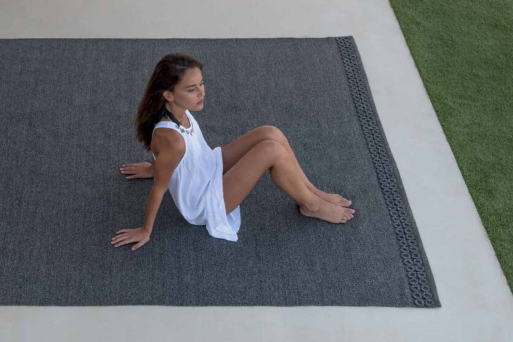 Quadro di Talenti tappeto è confezionato utilizzando filati di fibra sintetica trattati con idrorepellenza, antimacchia e antimuffa. Il filato in polipropilene (PP) è particolarmente adatto per gli ambienti esterni, grazie alla sua resistenza agli agenti atmosferici e alla stabilità ai raggi UV. Questi tappeti sono disponibili in diverse dimensioni, comprese opzioni rotonde, garantendo versatilità e durabilità per gli spazi esterni.