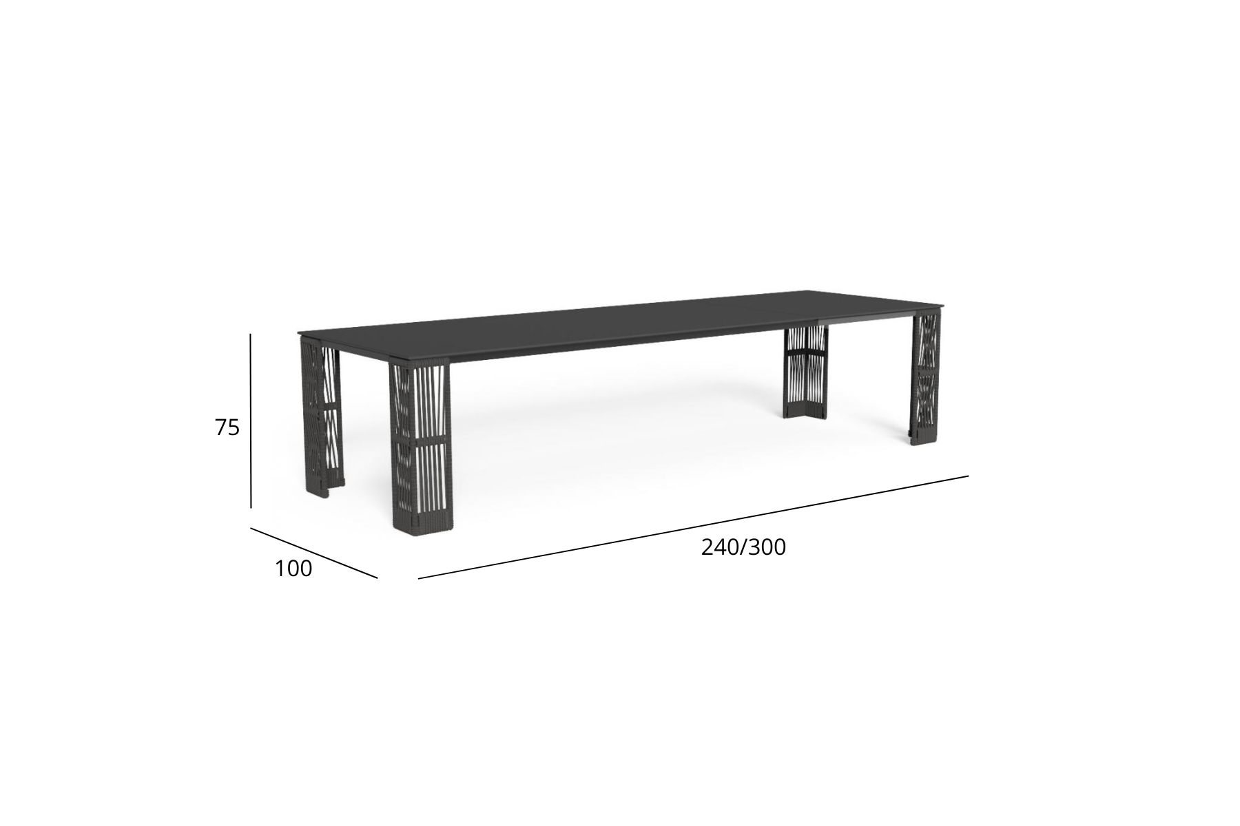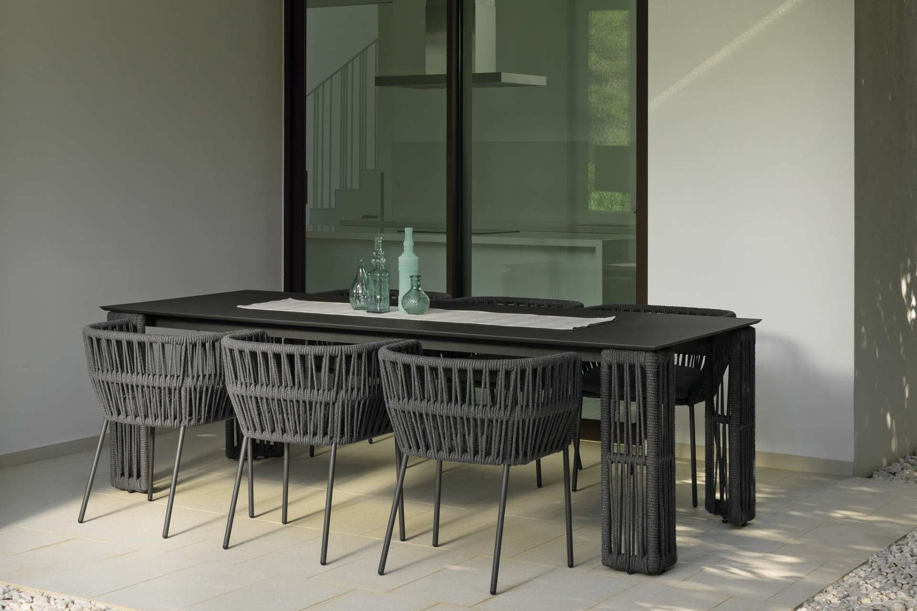 Cliff di Talenti Γ¨ un tavolo da pranzo caratterizzato dalΒ piano che poggia su gambe caratterizzate dal distintivo intreccio di corde che contraddistingue lo stile della collezione. La struttura Γ¨ in alluminio verniciato a polvere mentre gli intrecciΒ in corda sono di tessuto sintetico, abbinato cromaticamente al piano, per un effetto armonioso e ricercato.
