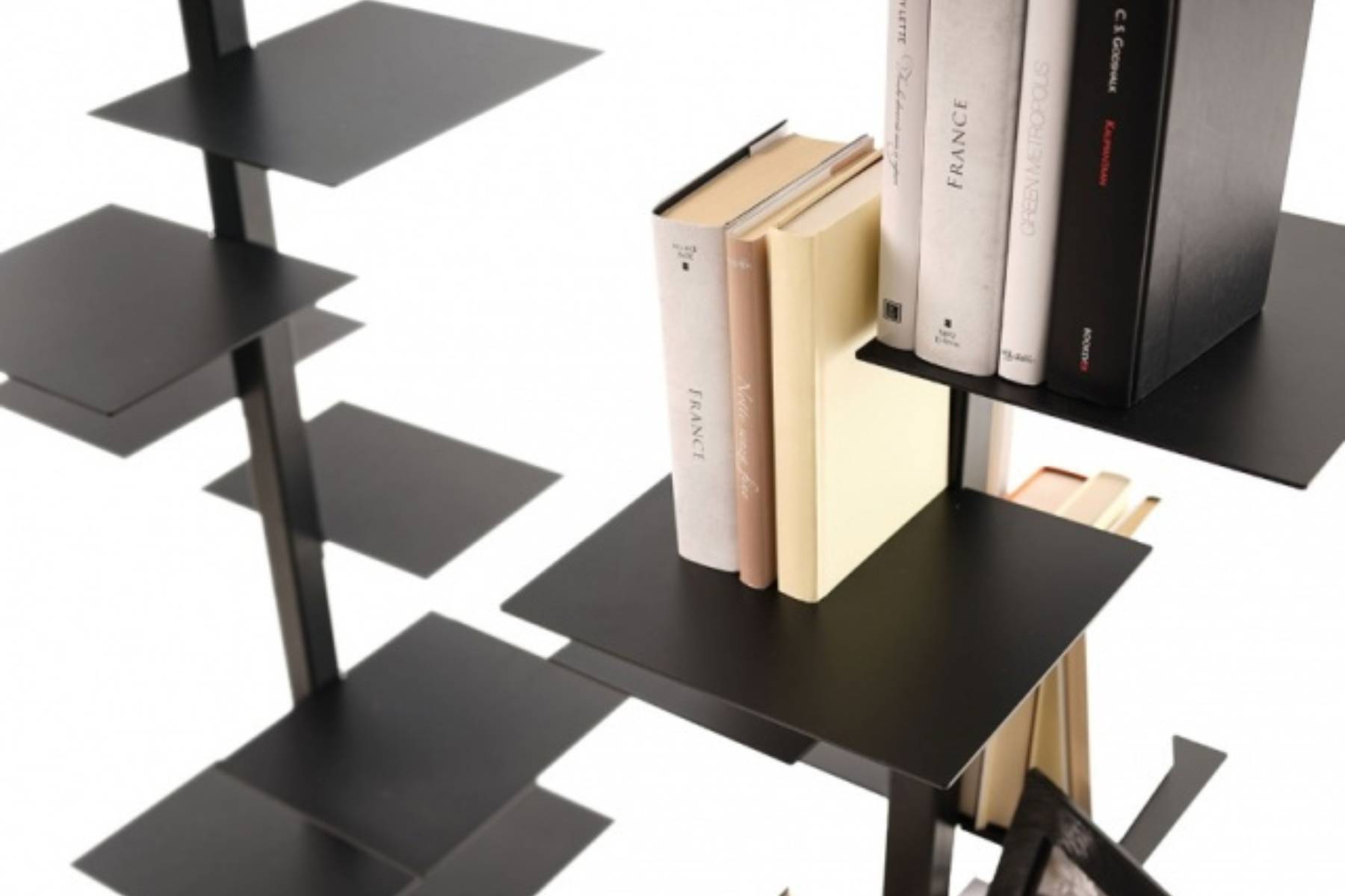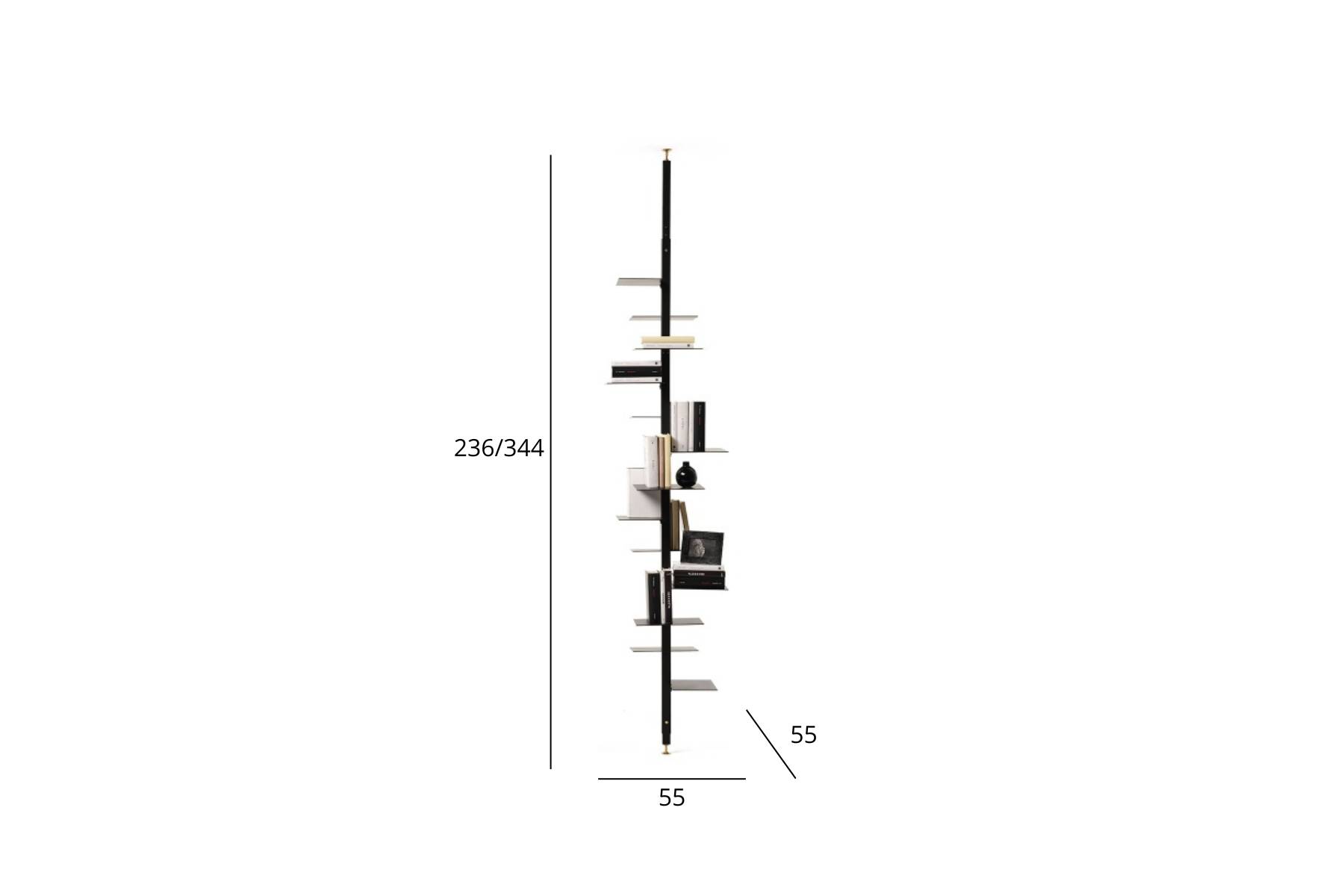 AdelaideΒ Γ¨ un’elegante Γ©tagΓ¨re progettata con struttura in legno massello di Iroko o in ferro verniciato nero opaco. Questa libreria verticale si compone di 13 ripiani e puΓ² essere fissata a soffitto. Il suo design unisce terra e cielo grazie a un supporto girevole a base quadrata, al quale sono fissati in modo asimmetrico i ripiani di due diverse dimensioni (20×30 cm e 25×30 cm) su tutti e quattro i lati.