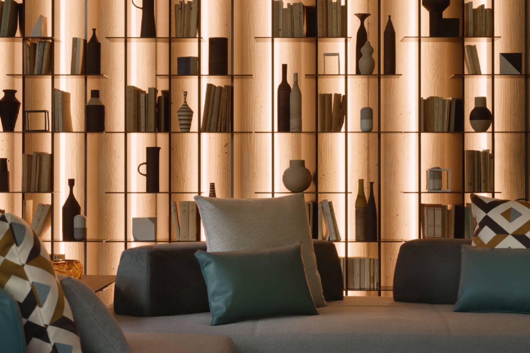 Cclight di Natevo-Flou è una libreria che rappresenta un esempio eccellente di come la presenza della luce possa conferire leggerezza, un’atmosfera avvolgente e un tocco di magia all’ambiente circostante. Nei primi e terzi montanti sono integrati LED che, una volta accesi, delineano forme suggestive e diffondono una quantità di luce paragonabile a quella di una lampada da terra.