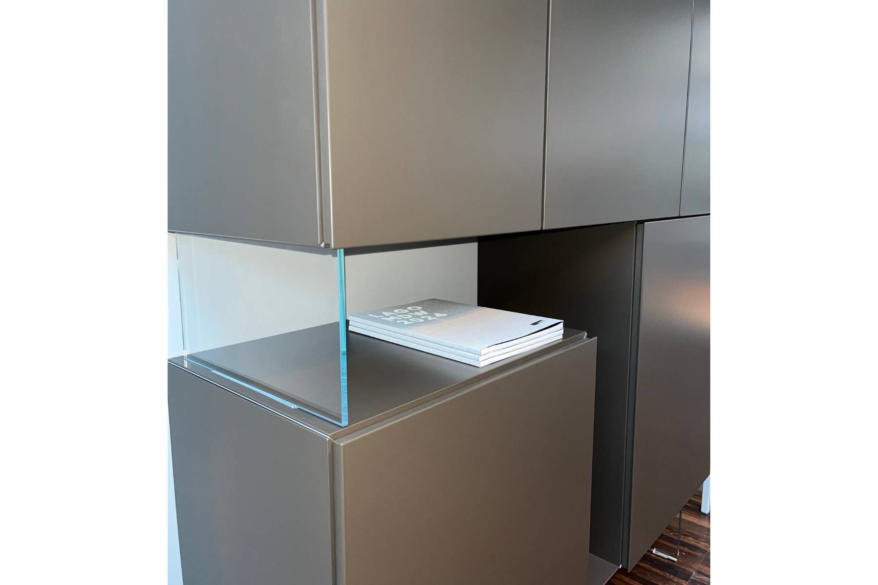 Colore in foto: struttura laccato Moka e vetro lucido Extrachiaro