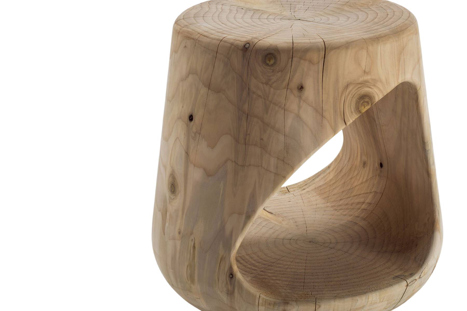 Geppo di Riva 1920 Γ¨ uno sgabello realizzato da un singolo blocco di legno massiccio di cedro profumato, questo sgabello si distingue per le sue curve morbide e sinuose.