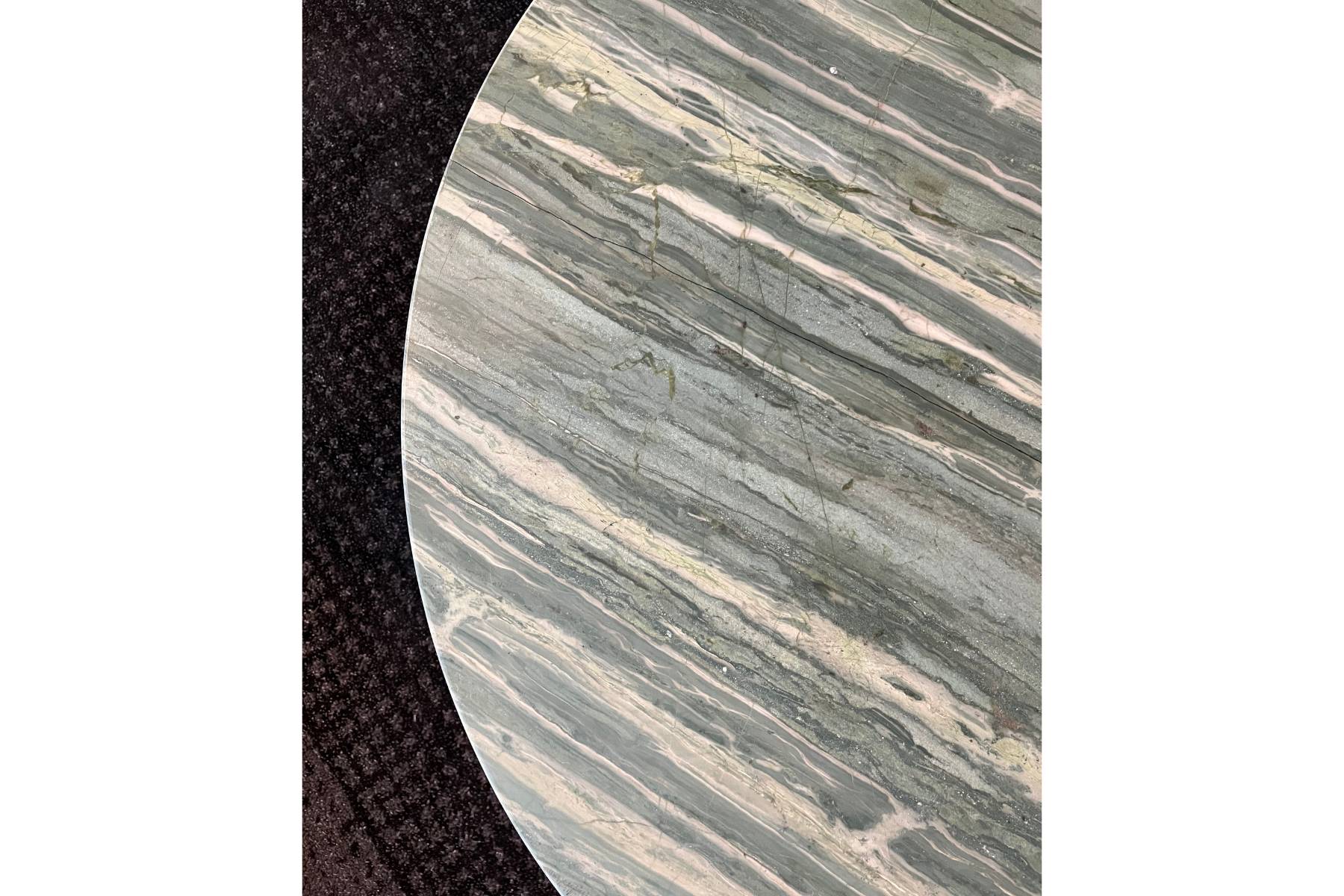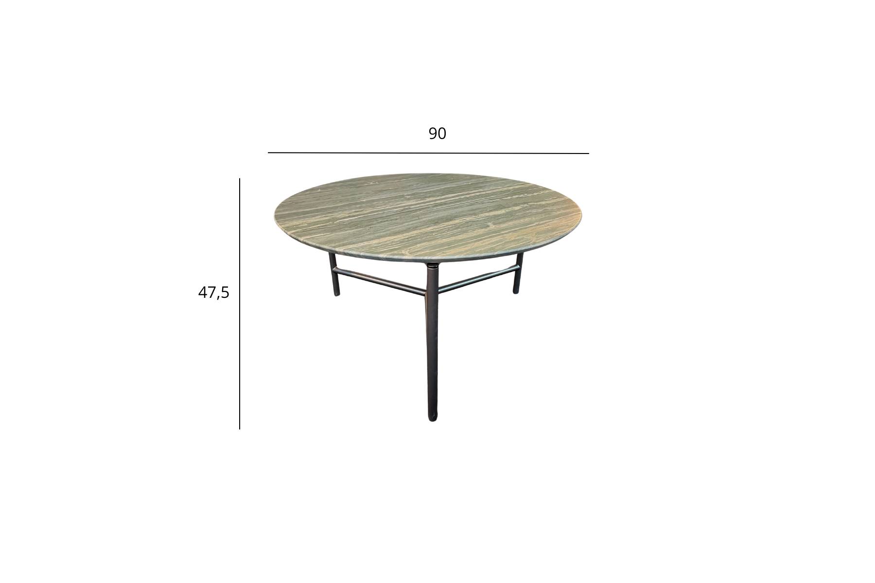 La struttura, realizzata in ferro con finitura brunito opaco, presenta dettagli in oro lucido o nickel nero lucido. Il piano Γ¨ in marmo.