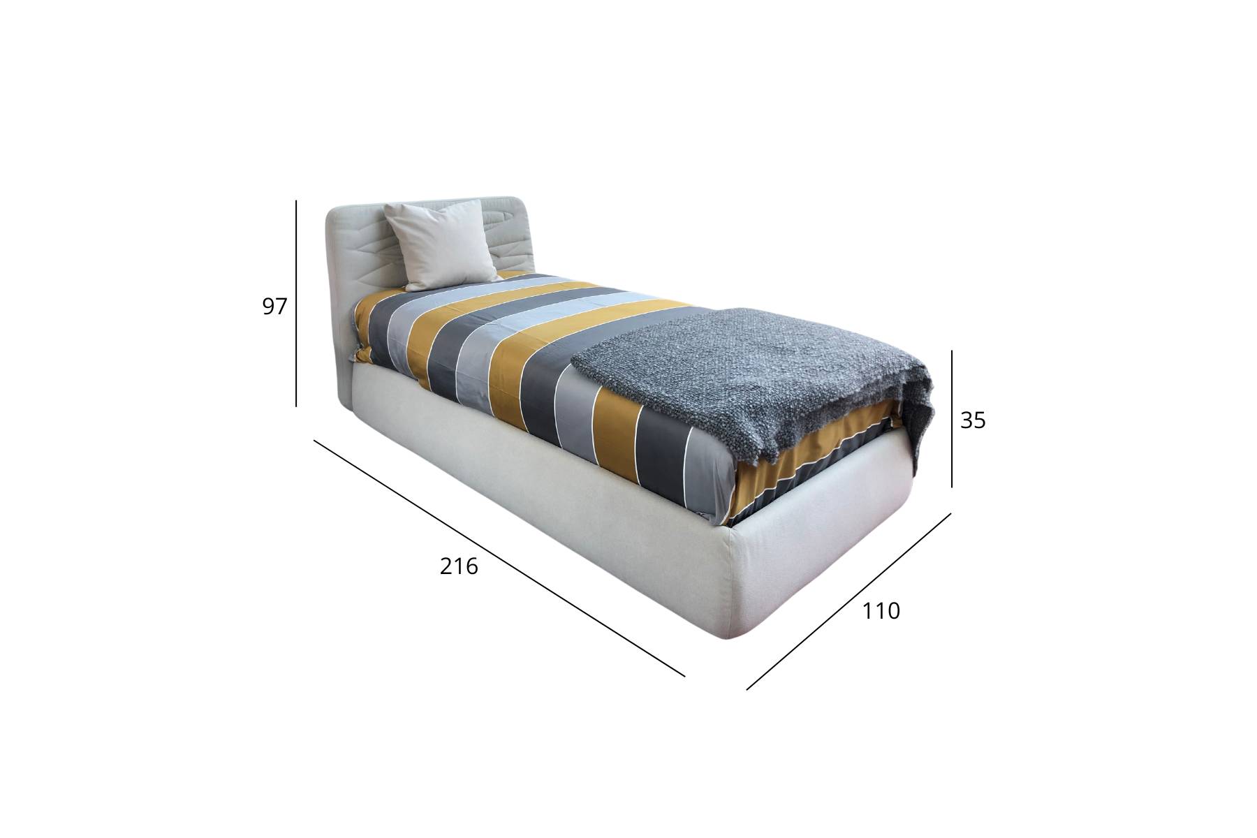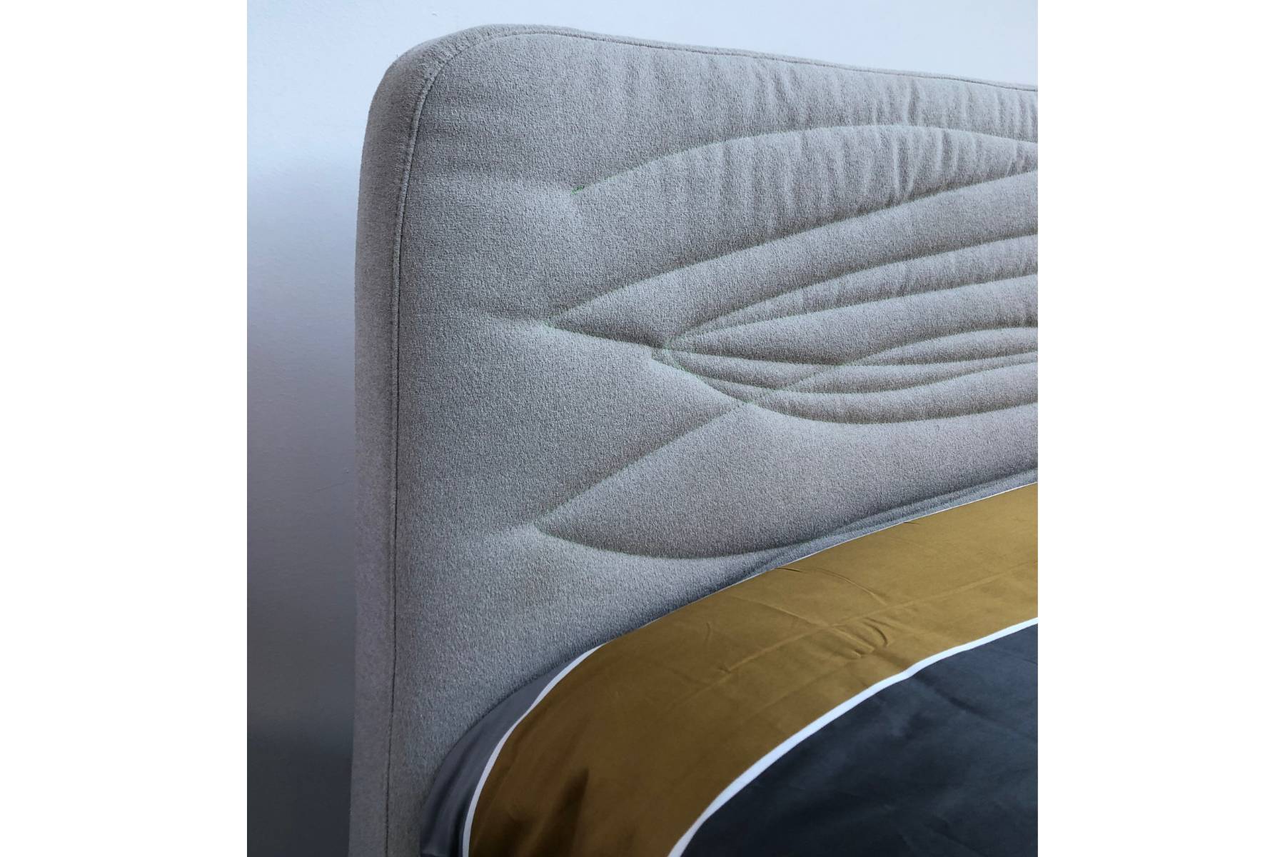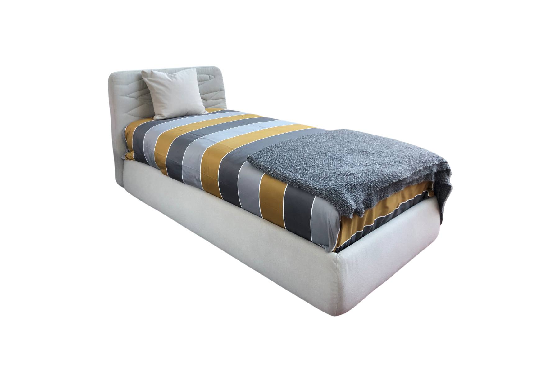 Graffio di Clever è un letto singolo rivestito in tessuto Cat. A TA03 e Filo Verde.