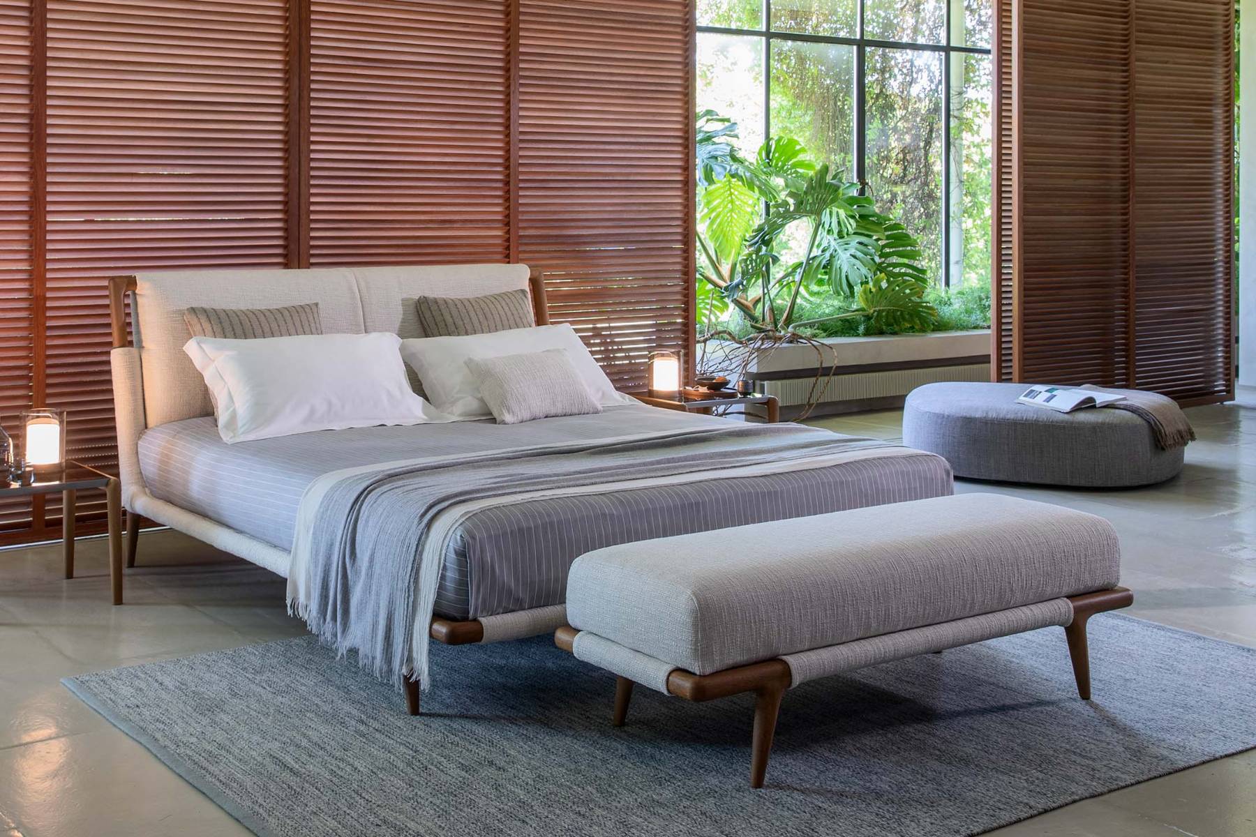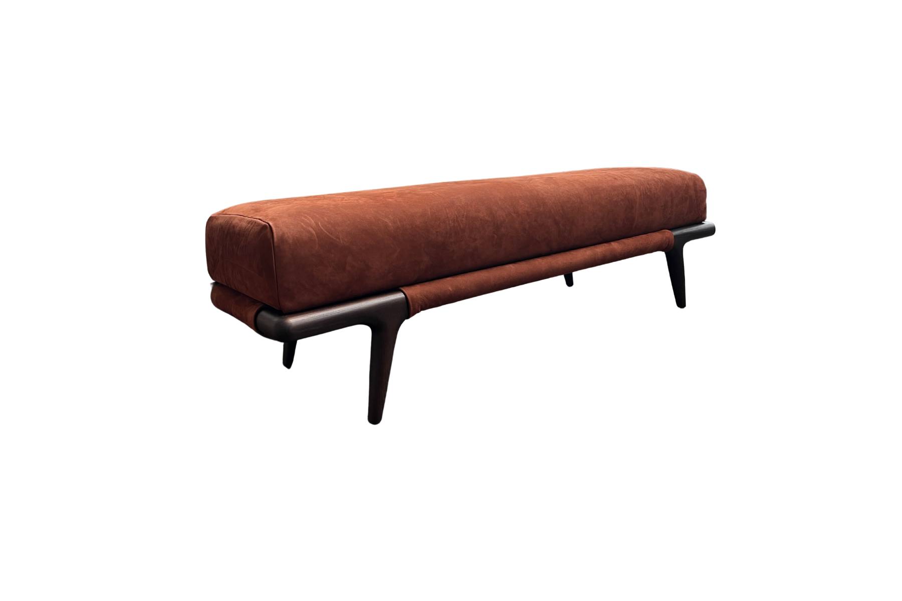 Panca Gaudí di Flou è una panca caratterizzata da piedi in legno massello curvato, disponibili in diverse finiture, e da una seduta imbottita e rifinita con cuciture a vista. È un elemento versatile che può essere collocato ai piedi del letto, in un corridoio o come complemento in un soggiorno.