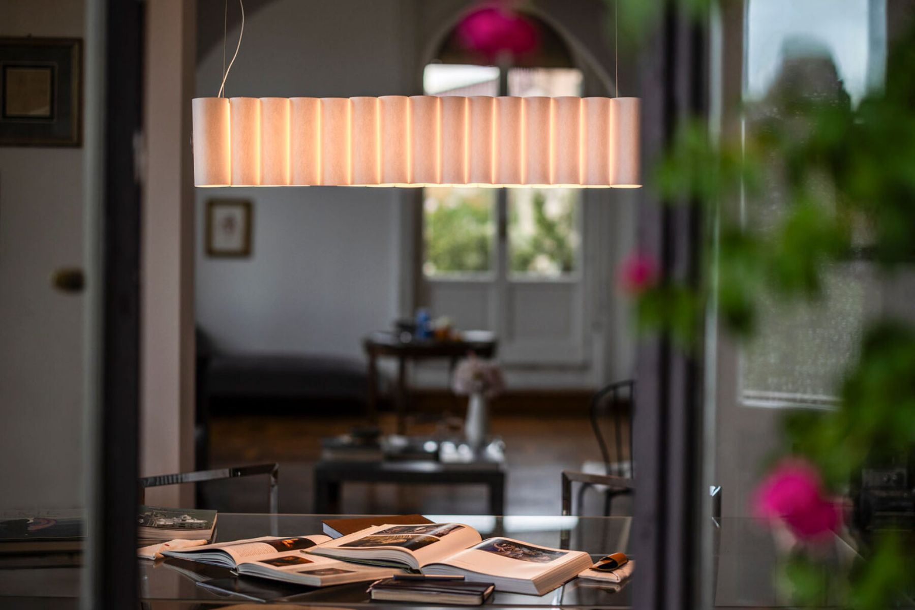 Pli di Foscarini Γ¨ una lampada a sospensione in cui forma, materiale e costruzione si fondono in un design fluido e armonioso. Le delicate pieghe e i drappeggi di Pli richiamano lβeleganza di un tessuto, trasmettendo una sensazione di leggerezza, mentre la sua luce soffusa crea unβatmosfera accogliente e intima negli spazi.