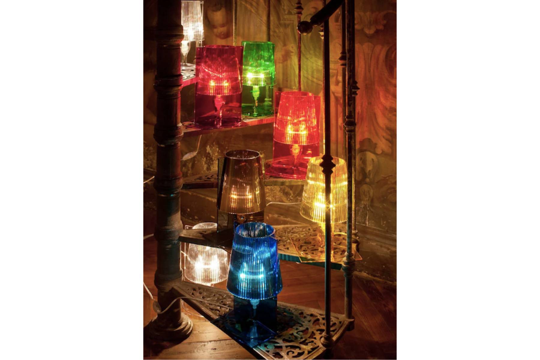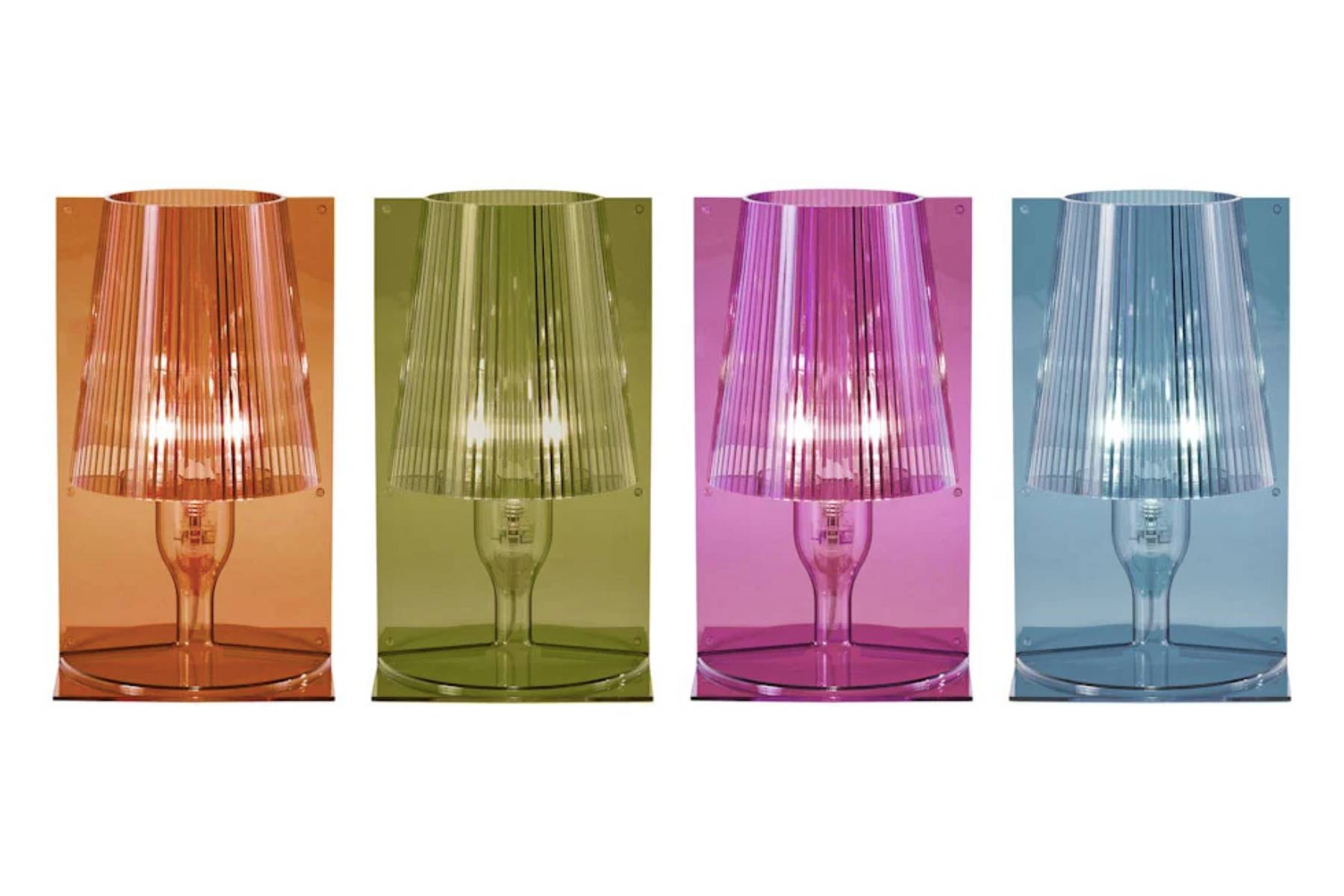 Qui l’icona classica dell’abat-jour viene reinventata da Kartell, trasformandosi in un prodotto industriale disponibile in molteplici colori.