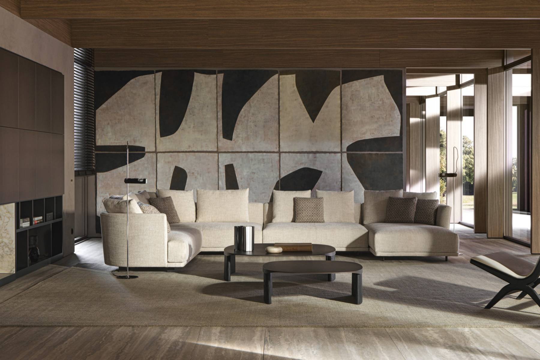 Si tratta di un elegante involucro curvilineo, che evoca un ambiente accogliente, avvolgendo seduta e schienale in modo fluido e continuo. La scocca puรฒ essere rivestita in tessuto o pelle, offrendo un comfort eccezionale, analogamente ai cuscini della seduta.