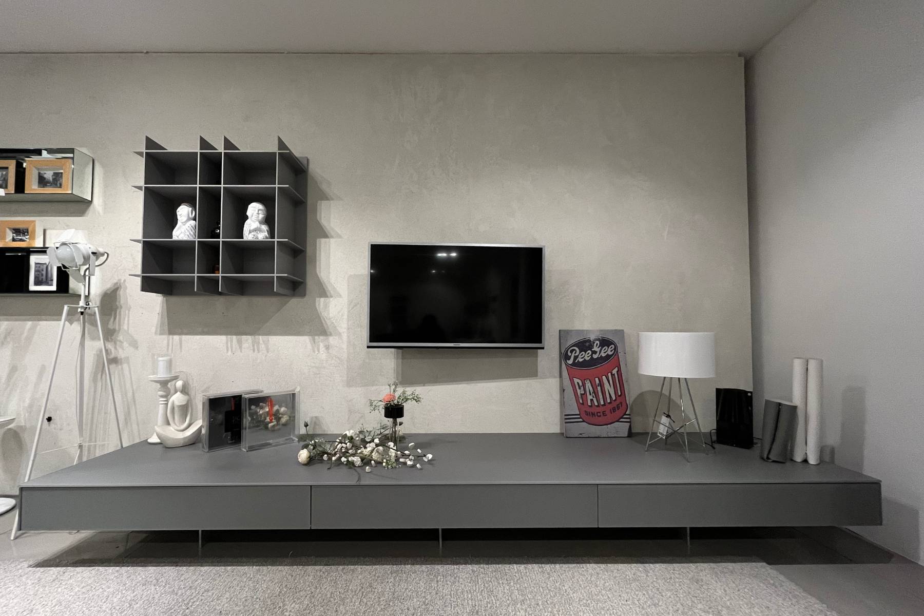 Mobile Living di Valcucine è un mobile composto da basi sospese in vetro.