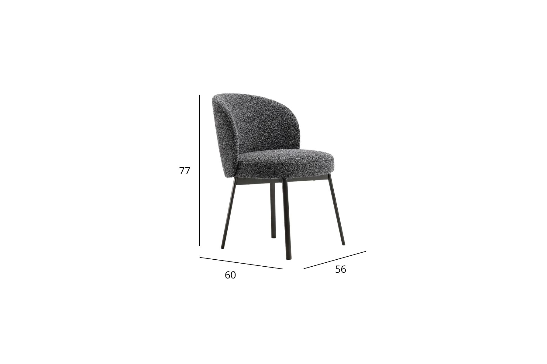 Hug di Frigerio Γ¨ una sedia dalle forme morbide e accoglienti, con braccioli che scendono leggermente rispetto alla seduta e uno schienale dalla curva delicata verso il basso. Disponibile con rivestimento in tessuto o in pelle e base in metallo.
