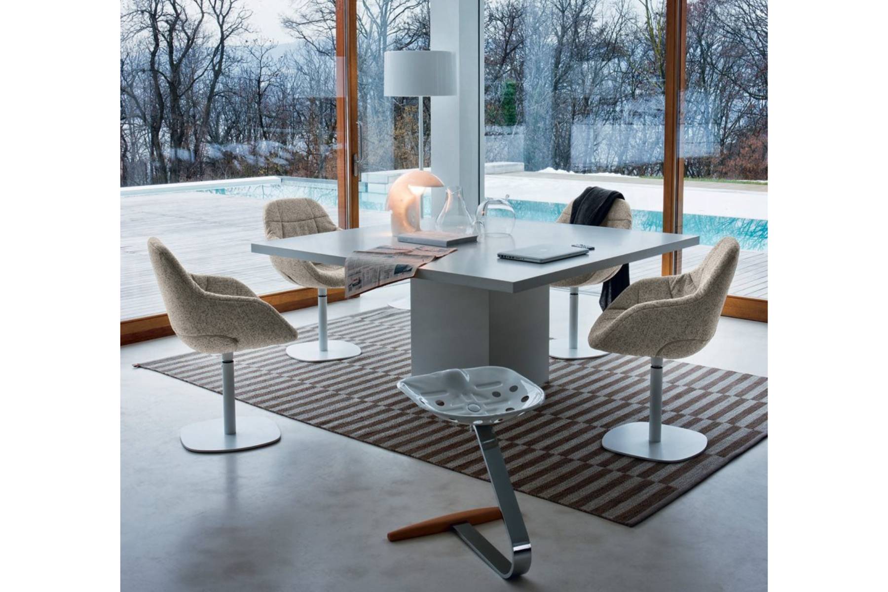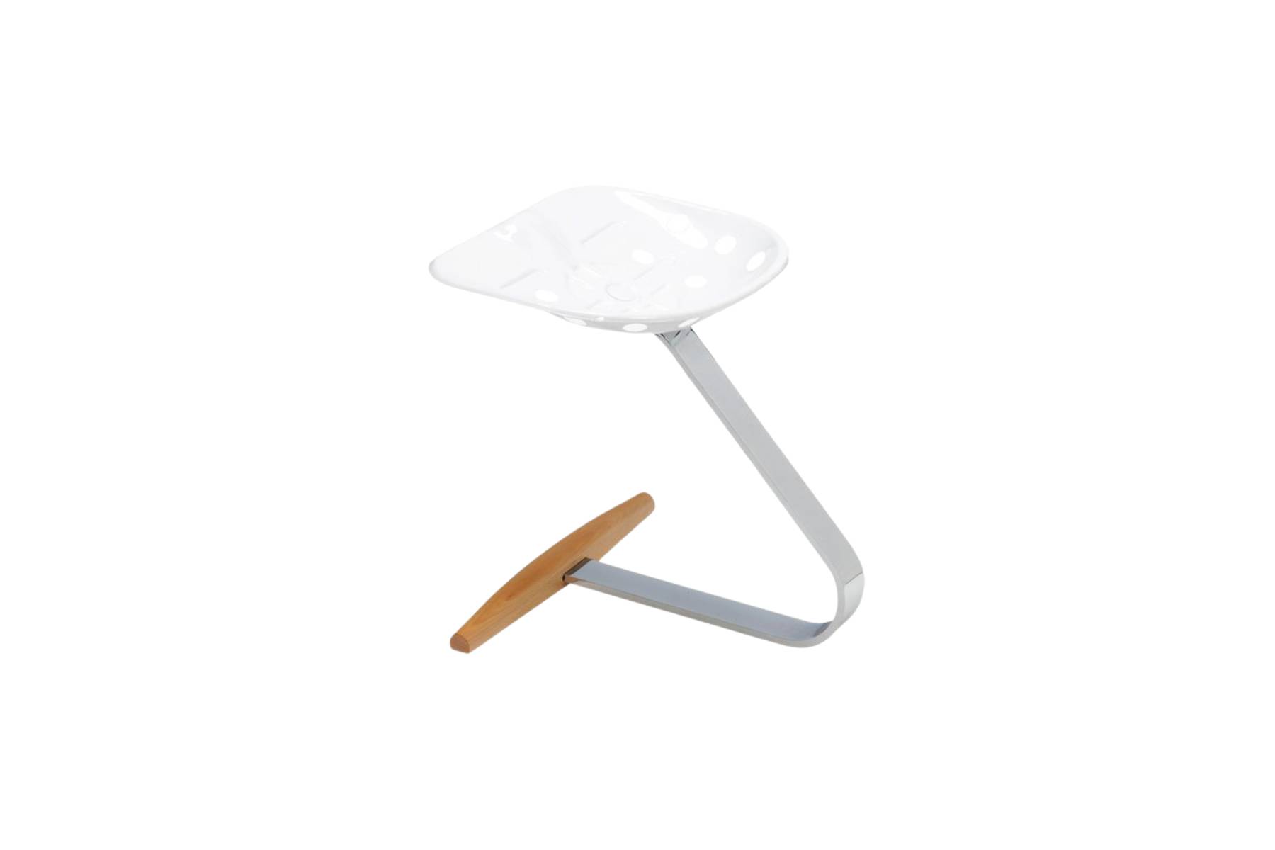 Mezzadro di Zanotta Γ¨ uno sgabello con struttura in acciaio cromato. Il sedile Γ¨ disponibile in varie colorazioni, mentre la base Γ¨ realizzata in faggio evaporato con finitura naturale.
