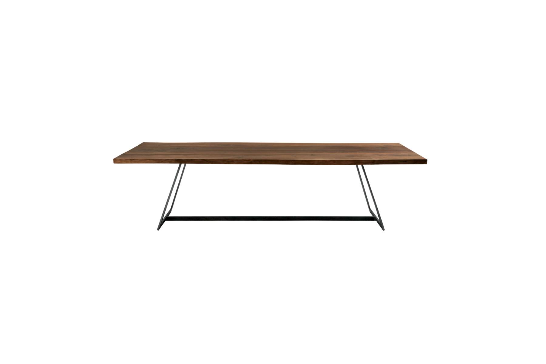 Calle Cult di Riva1920 Γ¨ un tavoloΒ caratterizzato da un piano in legno massello con bordi naturali, realizzato con liste di legno accostate. Questo top Γ¨ abbinato a una struttura in ferro, composta da due gambe a slitta e una barra centrale, che conferisce al tavolo un design contemporaneo e robusto, perfetto per qualsiasi ambiente.