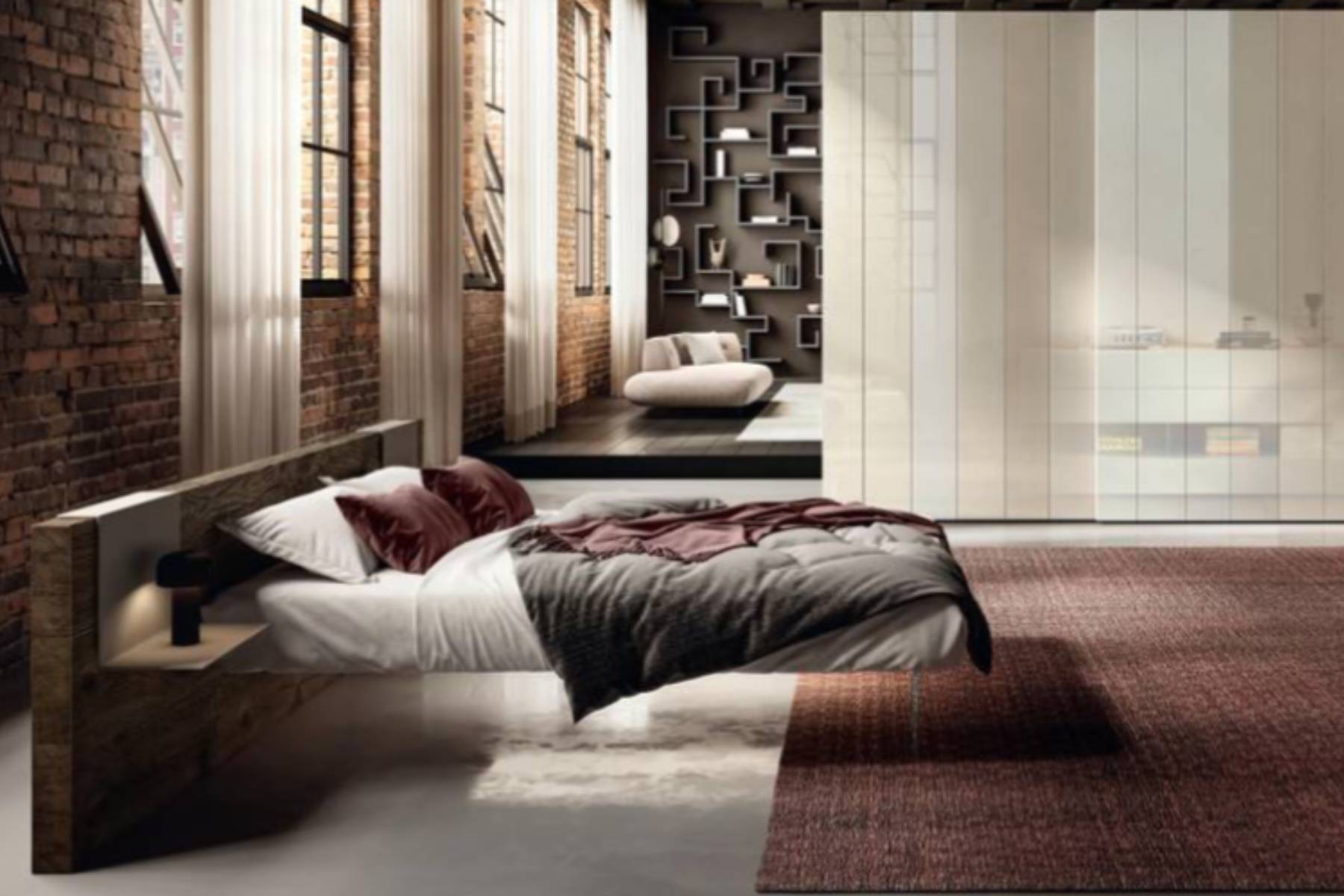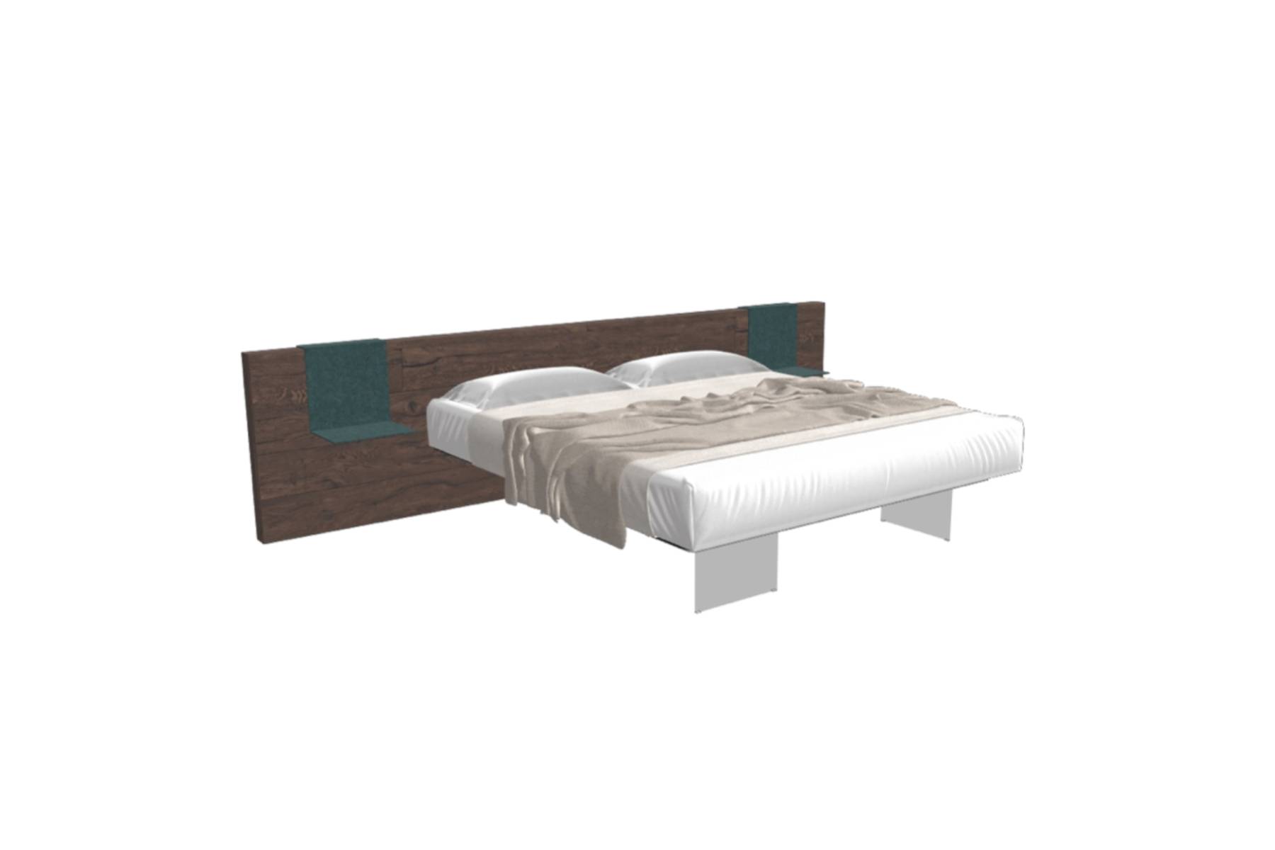 Air Wildwood di Lago è un letto che, grazie ai supporti in vetro temperato extrachiaro, crea un effetto sospeso che dona leggerezza alla stanza. La testiera è personalizzabile e può essere fissato a parete con mensole integrate.