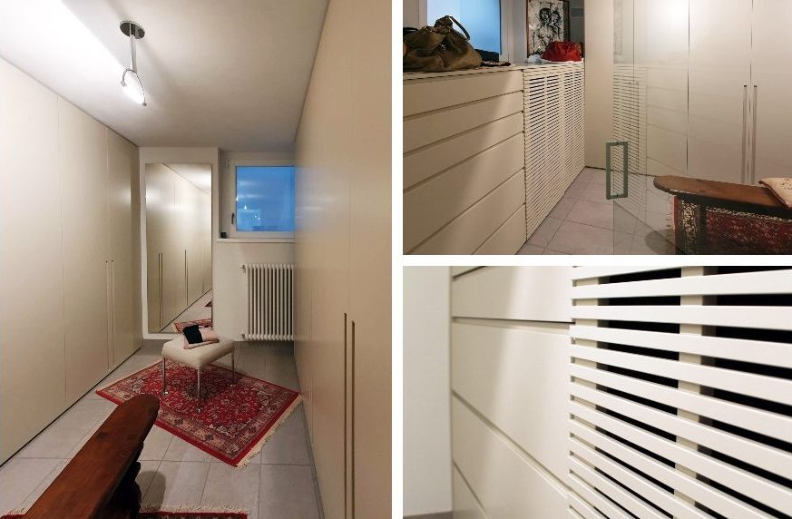 Quando si parla di cabine armadio e guardaroba, i mobili su misura sono quasi sempre la soluzione vincente: anche in questa villa abbiamo creato degli armadi studiati per sfruttare ogni minimo spazio a disposizione! Questo guardaroba non è composto solo da armadi, ma anche da cassettiere e ripiani per fare in modo che ogni cosa trovi il suo posto.